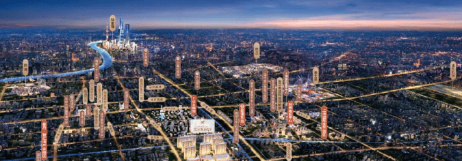 招商南昌市政公园1872全体外立面强调现代从义清晰的审美概念。限高50米,